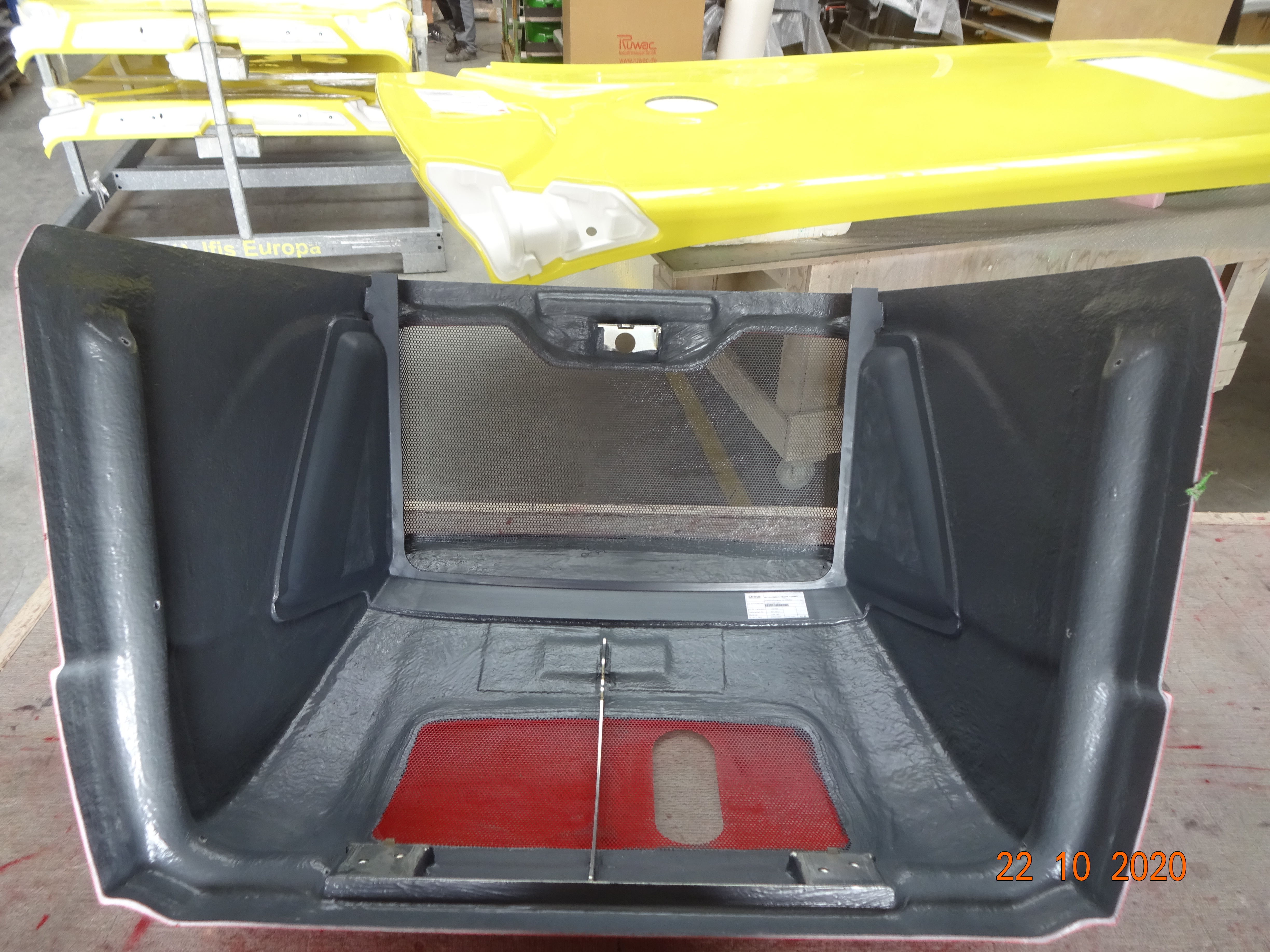 Sériové výrobě krytů s montáží na klíč předcházela řada přípravných kroků. Dle výkresové dokumentace zákazníka jsme vyrobili model a podle něj formu. První zákazníkem schválené kusy vedly k zavedení výrobního postupu a spuštění sériové výroby. Připravené díly byly přesně usazeny v rámech určených pro jejich přepravu a dodány zákazníkovi na klíč, včetně montáže na hotové stroje, bez nutnosti dalších úprav.
